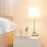 Aside from modern facilities like a multi-channel television, the interior is also complemented by an ironing set and climate control for maximum comfort. The 98 m^2 apartment is also furnished with a sofa and a writing table. A bathroom has a bidet, a separate toilet, and a shower, as well as a hairdryer and towels.